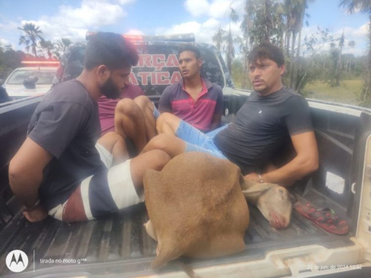 Segundo informações, após a denúncia de que homens armados estavam furtando e matando os animais da região, a equipe policial se dirigiu ao local e conseguiu prender os homens na entrada do assentamento.