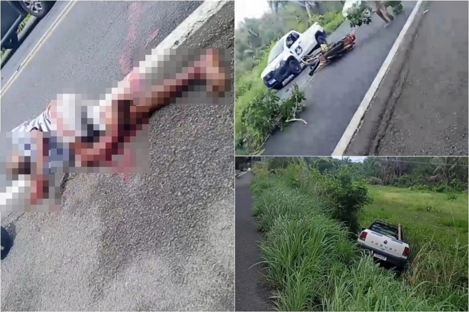 Segundo testemunhas, o carro acabou saindo da pista após a colisão e caiu em um barranco às margens da rodovia. O motociclista sofreu ferimentos sérios, principalmente em uma das pernas, e permaneceu no local aguardando socorro. Outro ocupante da moto também se feriu, mas não corre risco imediato de vida.